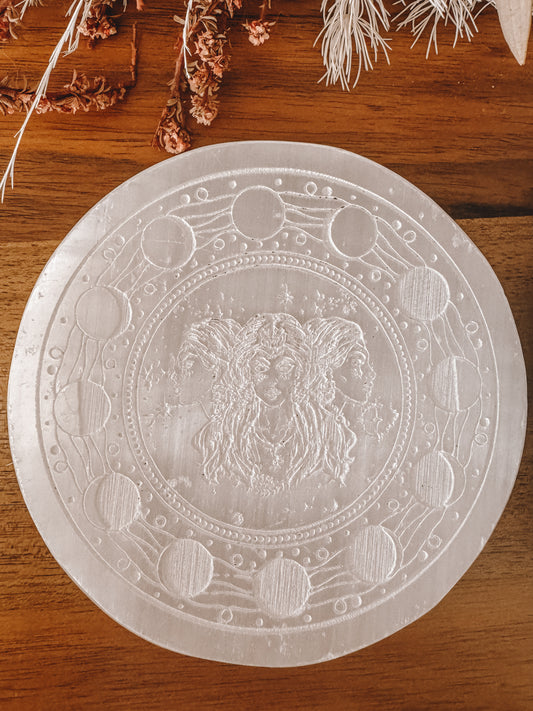 Selenite Crystal Charging Plate - Hekate | Witchcraft, Magic and the Moon Goddess