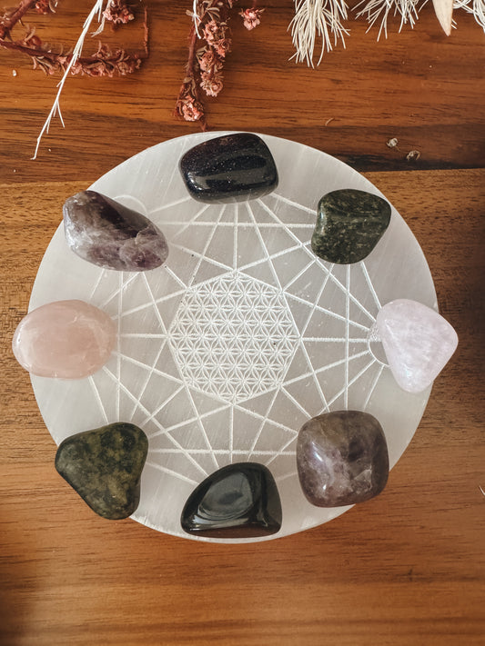 Selenite Crystal Charging Plate - Sacred Geometry (Round)