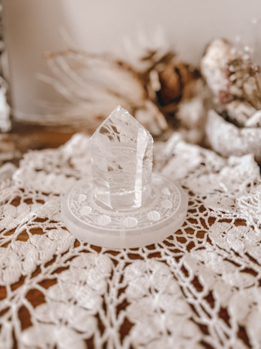 Selenite Crystal Charging Plate - Moon Phases (Long)