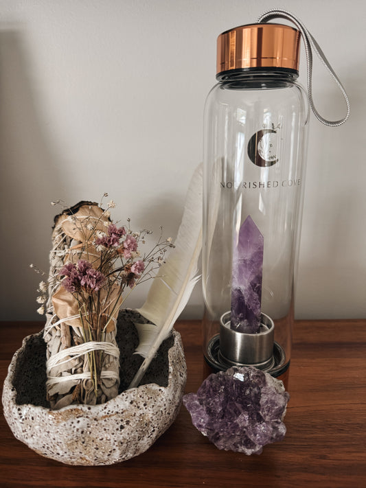 Amethyst Crystal Infused Water Bottle (Rose Gold Collection)