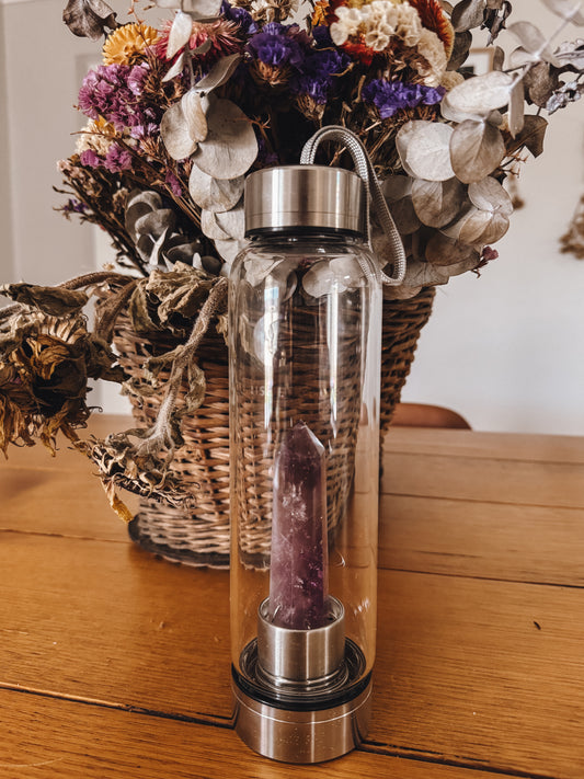 Amethyst Crystal Infused Water Bottle (Silver Collection)