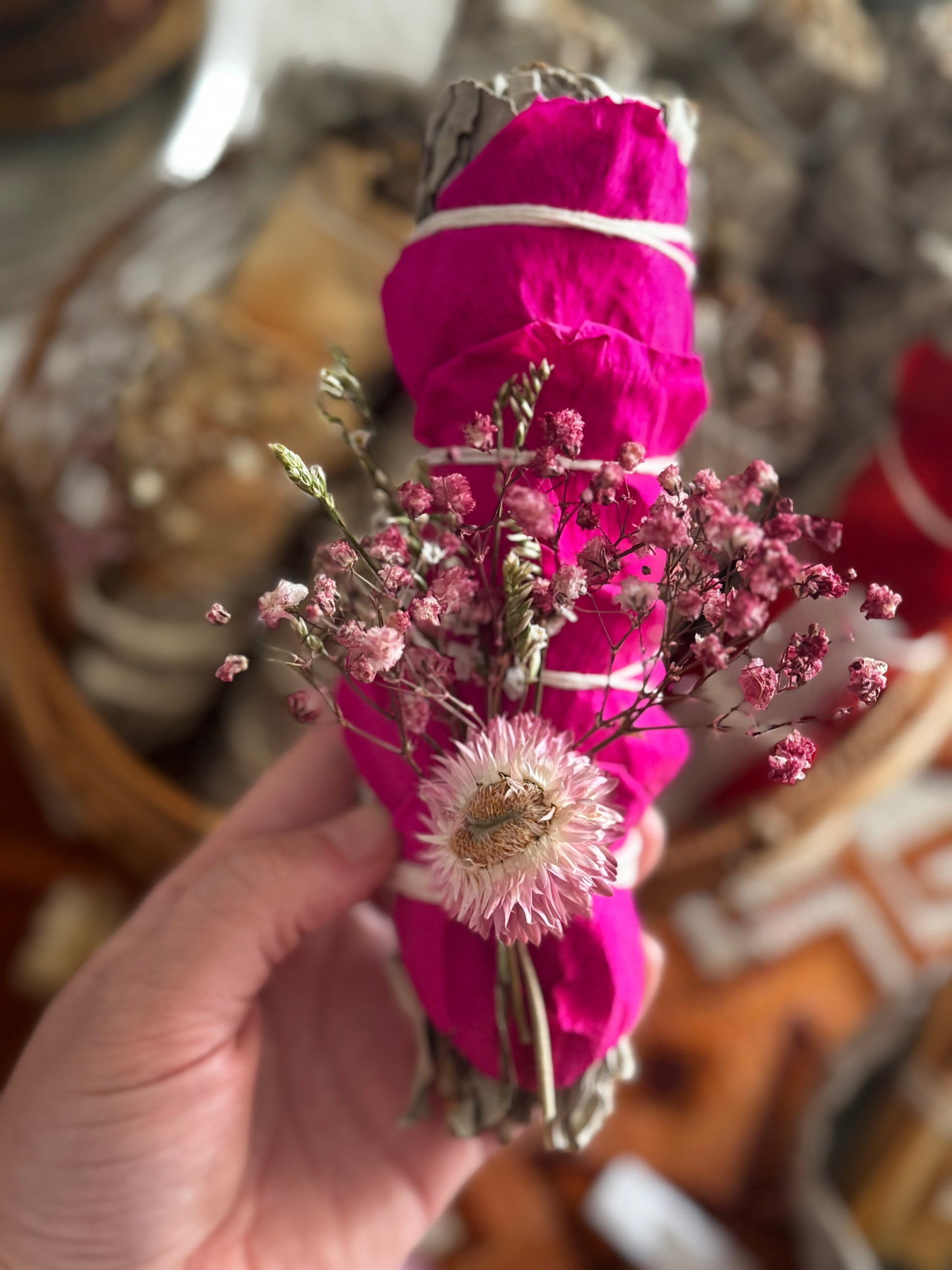 Our smudge sticks are handcrafted in small batches to preserve petal colours as naturally as possible.